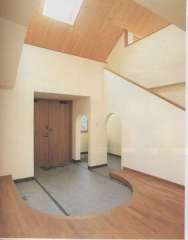 直線と曲線をダイナミックに調和。自然石、木、漆喰壁のつくり出す雰囲気が上品で暖かい。