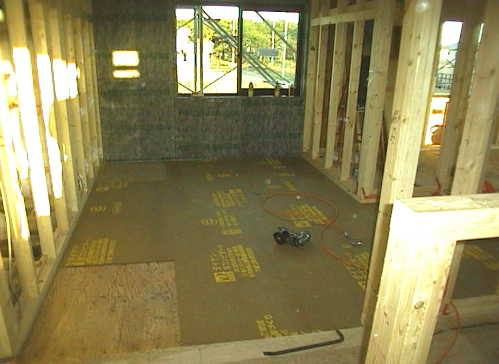 二階床はコンパネの上に遮音ボードを貼る事により、